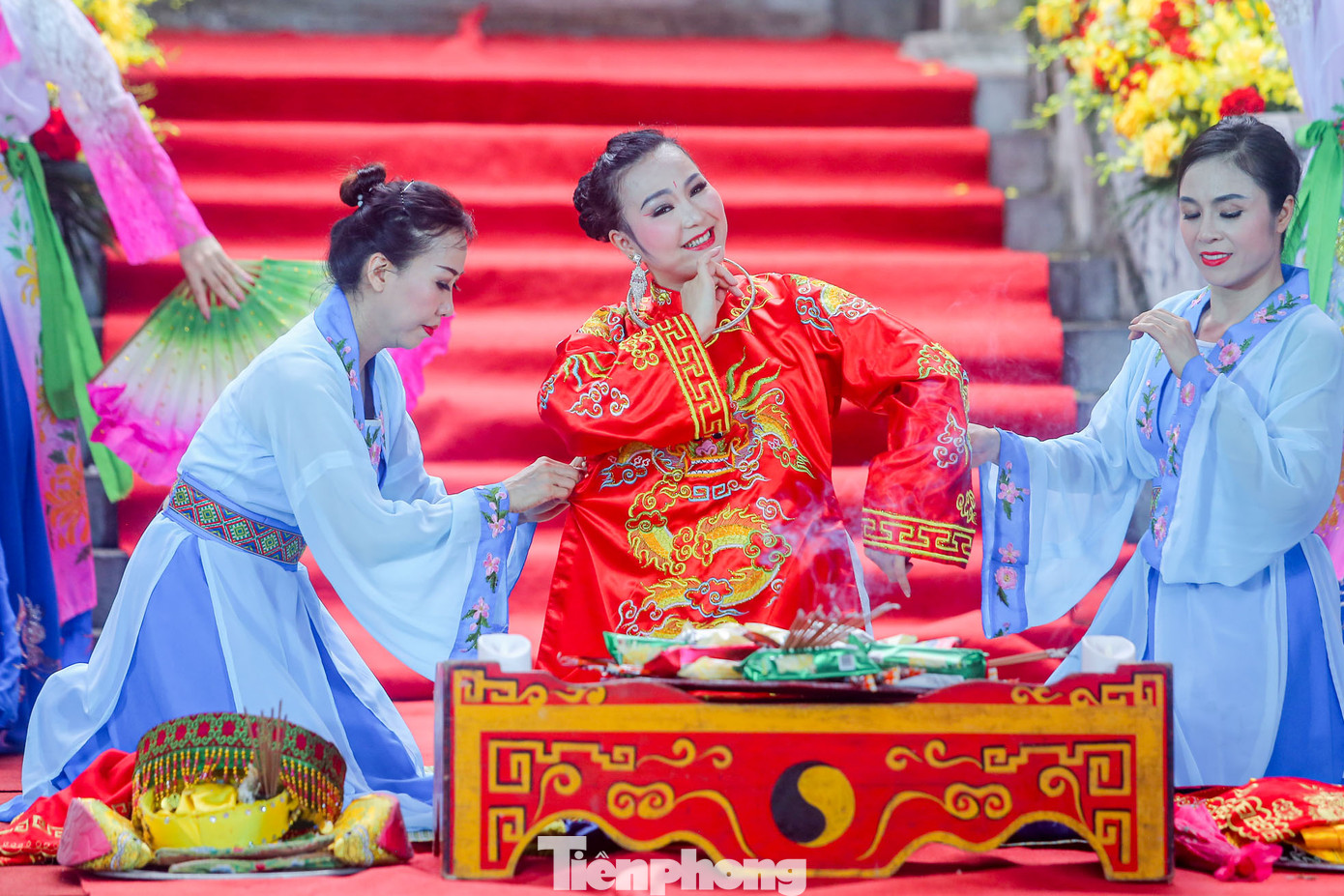 | Màn sử thi về Thần tích Cao Sơn Đại Vương được diễn ra tại sân đền. |