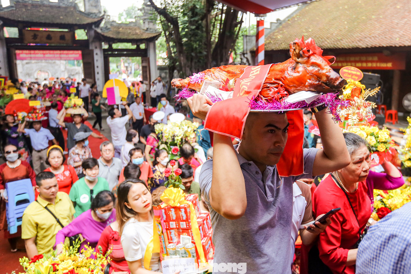 Ghi nhận của PV vào sáng nay (16/3 Âm lịch), hàng nghìn người dân và du khách thập phương đã đổ về trấn Nam Thăng Long để tham dự lễ hội truyền thống đền Kim Liên. Cùng với đó, người dân và du khách dâng hương, dâng lễ với những mâm cúng với gà, heo quay... để thể hiện lòng biết ơn tới Đức thần Cao Sơn, vị thần có công với nước được nhân dân tôn thờ.