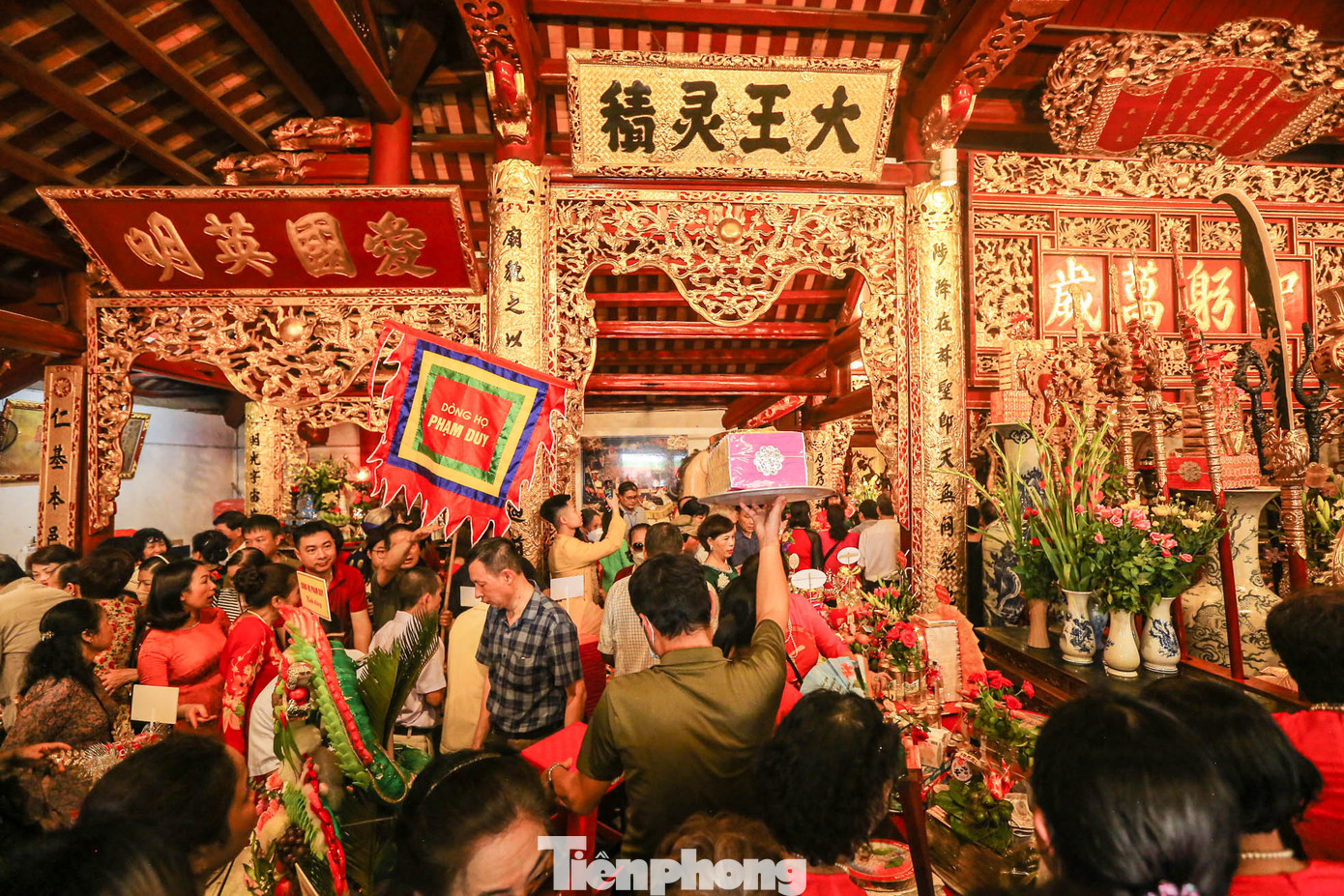 | Từ sáng sớm nay (ngày 16/3 Âm lịch), sân đình đã chật kín người đổ về đền Kim Liên, một trong Tứ trấn Thăng Long xưa. |