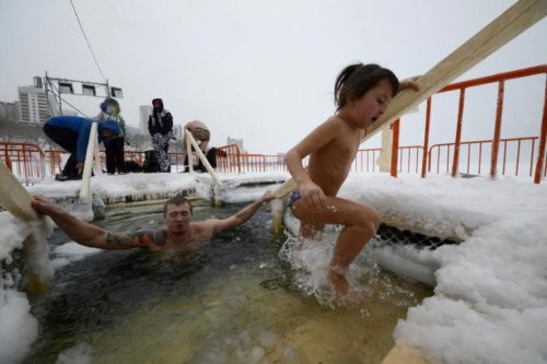 Tại Moscow, hàng nghìn tín đồ chính thống giáo tụ họp để cùng thực hiện lễ rửa tội đặc biệt diễn ra ngày 18 và 19/1. Theo truyền thống hàng nghìn người sẽ cùng phá lớp băng trên bề mặt của các con sông hoặc hồ nước để làm nên những hố tắm và rửa tội. Tục lệ này có từ khoảng 2.000 năm trước, khi chúa Jesus rửa tội bằng nước của dòng sông Jordan.