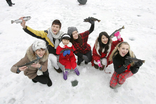Khu vực câu cá trên băng có chuẩn bị cả vùng riêng biệt dành cho người nước ngoài và trẻ em. Năm nay, hoạt động câu cá sẽ kéo dài đến 9 giờ tối.