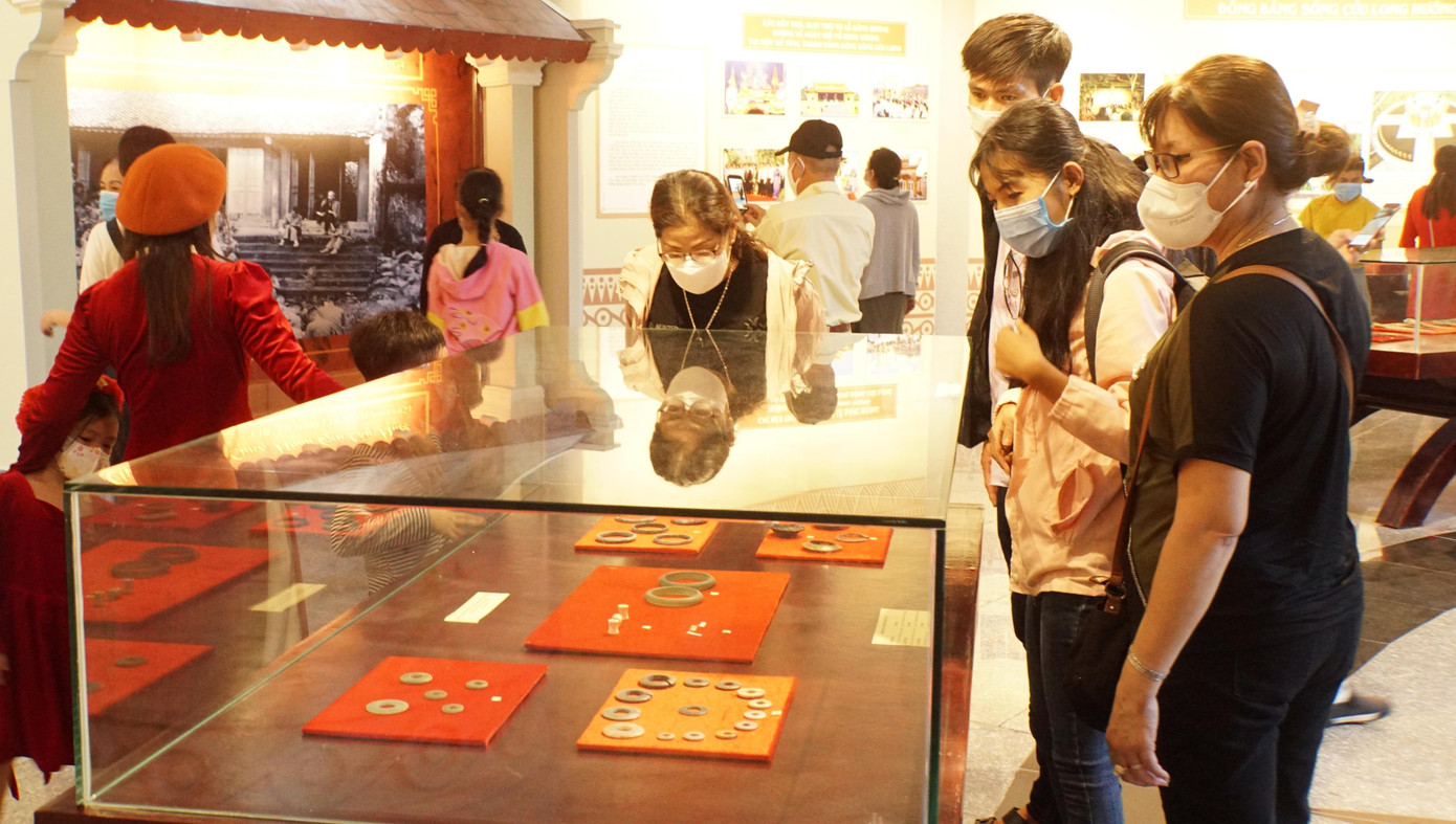| Người dân tham quan bộ trống đồng. - Ảnh: Hòa Hội |