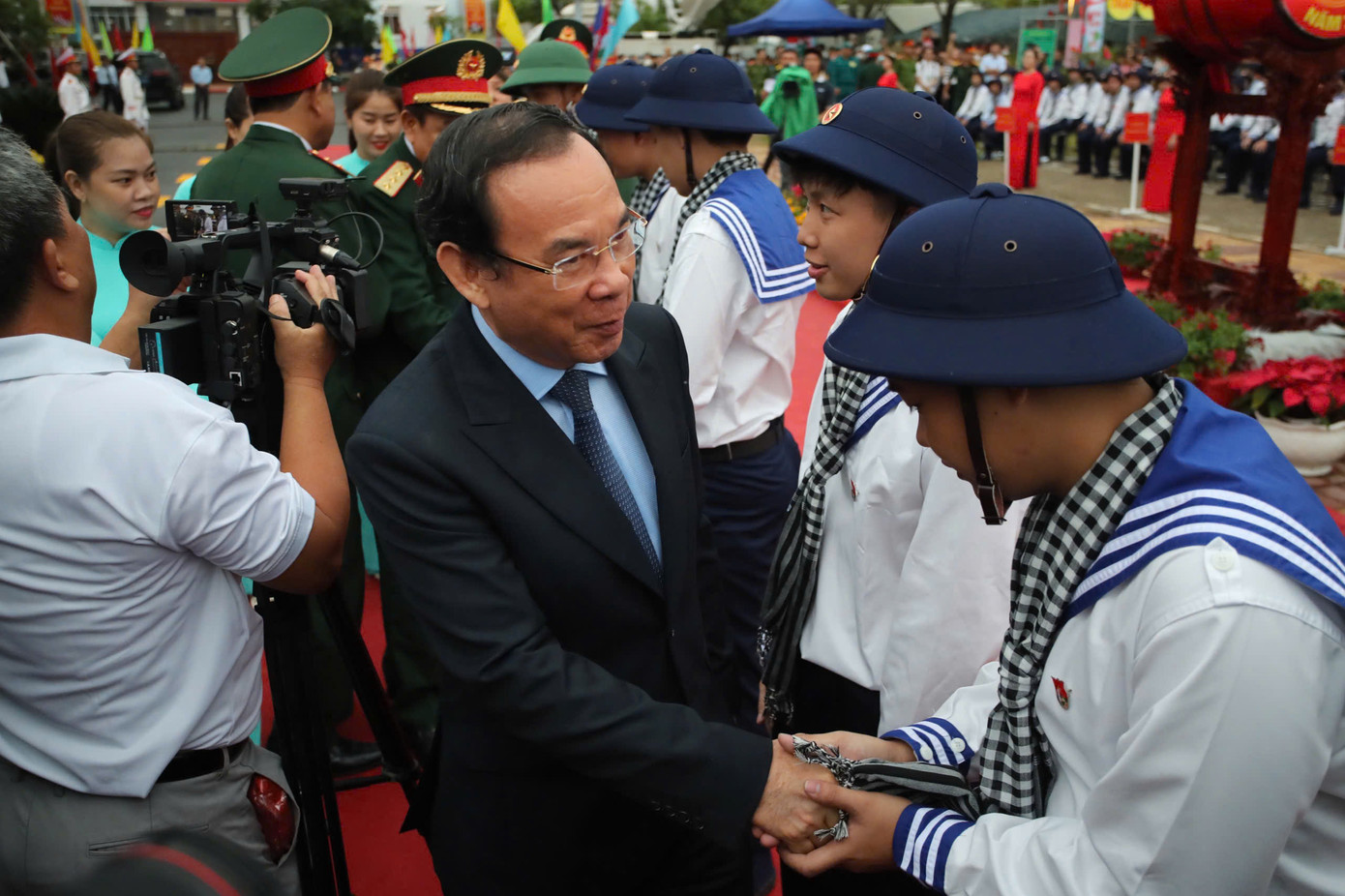 Bí thư Thành ủy TPHCM Nguyễn Văn Nên động viên thanh niên lên đường nhập ngũ. |
