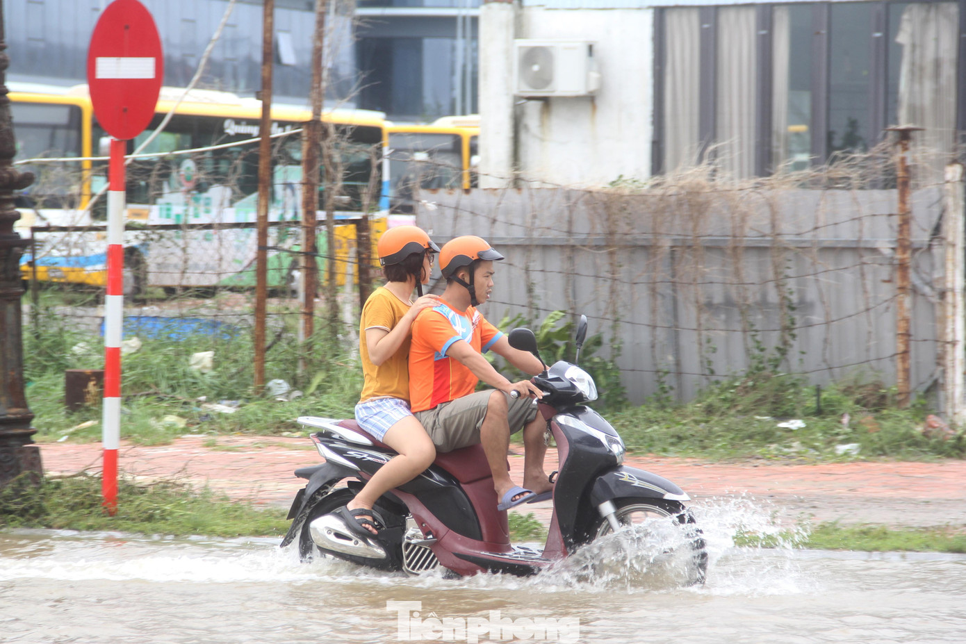 | Khu vực đường Như Nguyệt (đoạn dưới chân cầu sông Thuận Phước) vẫn bị ngập nghiêm trọng do nước tràn lên từ rạng sáng nay chưa thể thoát được. |