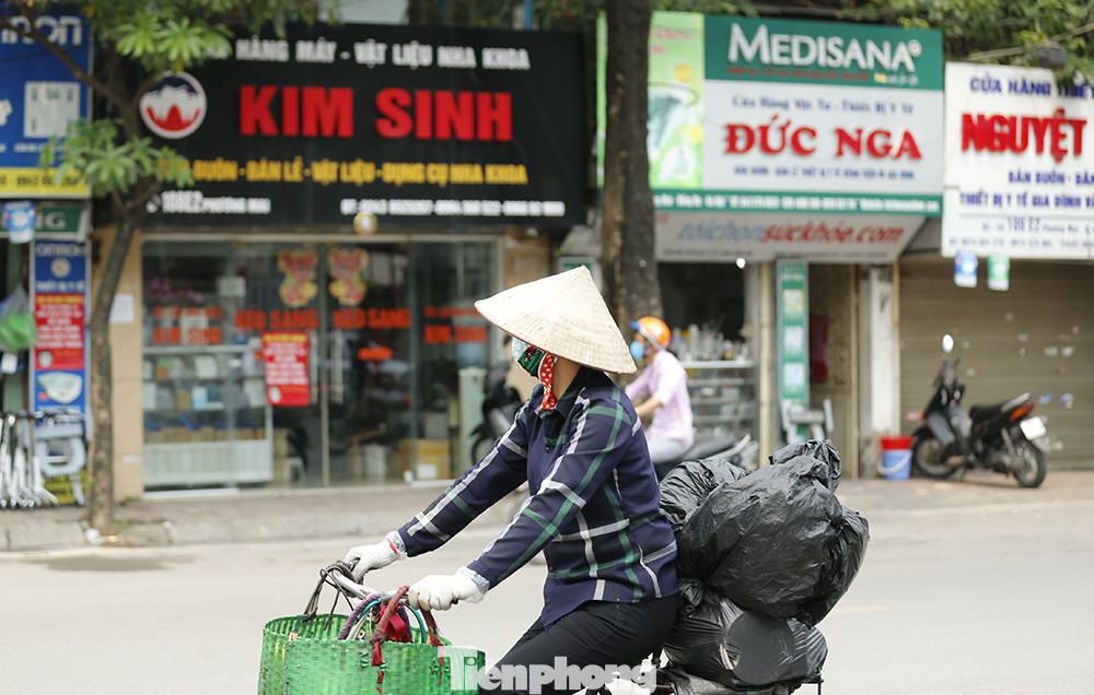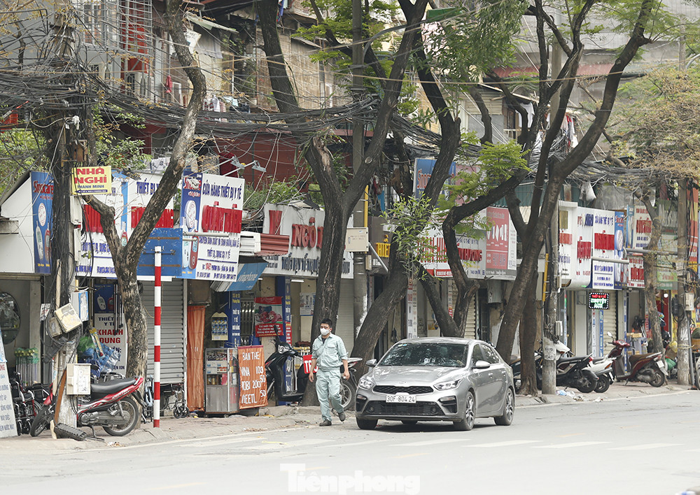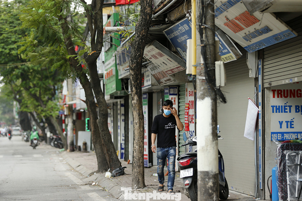 Hàng quán trên đường Phương Mai đều đóng cửa và người dân qua lại thưa thớt,nếu không có việc thì cũng không nên qua lại khu vực này