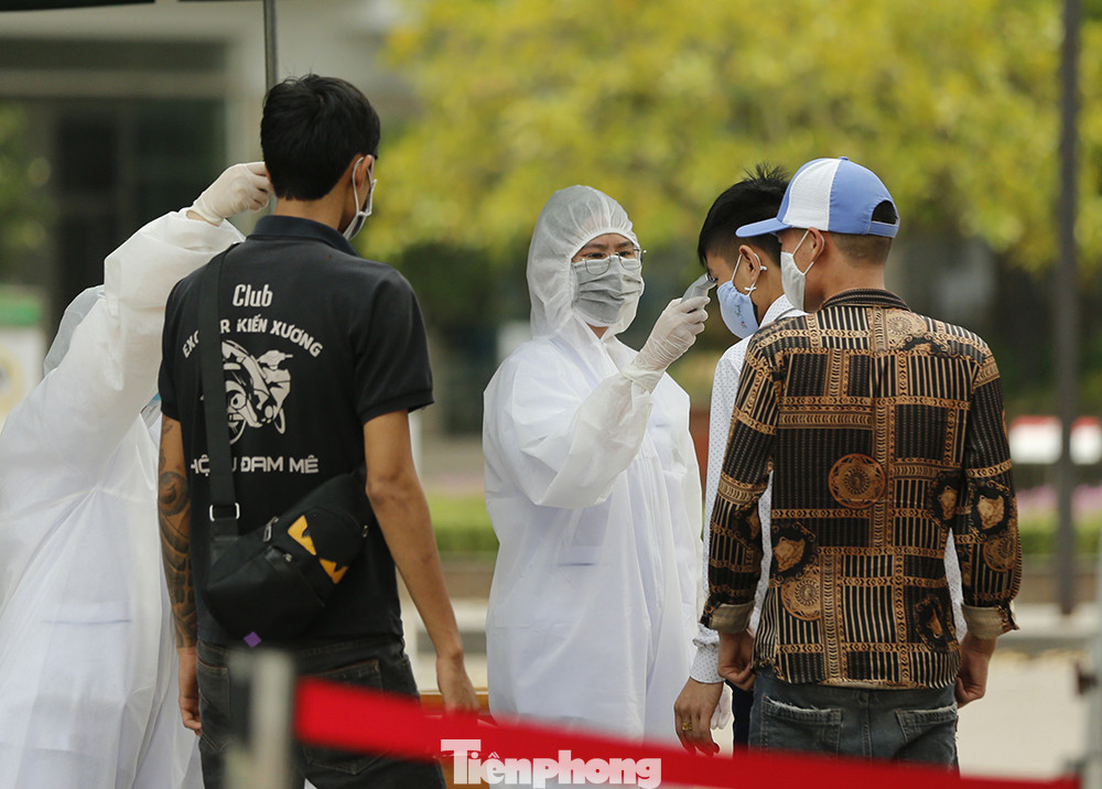 Hiện tại cổng chính trên đường Giải Phóng bệnh viện Bạch Mai người ra vào đều phải đo thân nhiệt