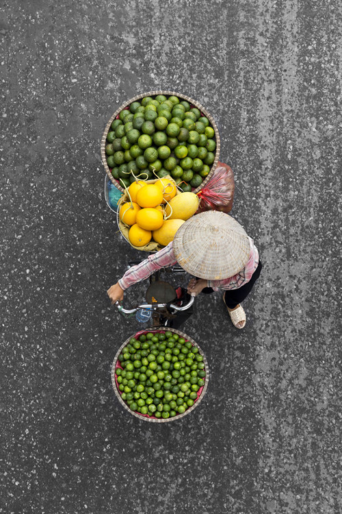 Cô đã phải dành nhiều giờ trên cầu hoặc ban công của nhà hàng để có được góc chụp trên cao xuống. Mục đích lựa chọn những nơi này là để cho thấy vẻ đẹp đối xứng, tôn lên nét đẹp nghệ thuật đường phố của người bán hàng rong tạo ra mà bản thân họ không biết.