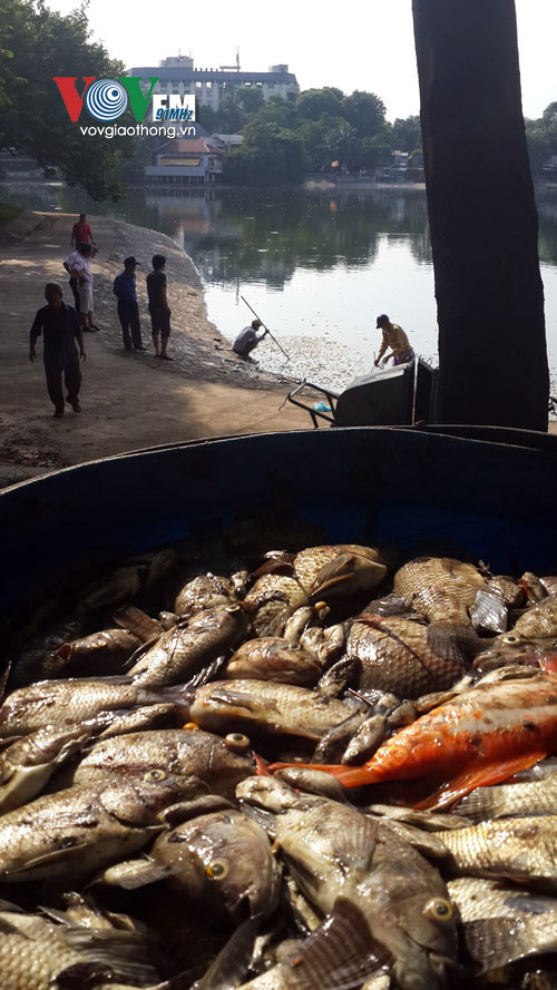 Theo một số người dân sống quan hồ, nguyên nhân cá chết hàng loạt là do những người nuôi cá đang tổ chức đánh cá. “Trong lúc đánh cá để bán, có rất nhiều cá bị chết và họ vứt luôn ra hồ”