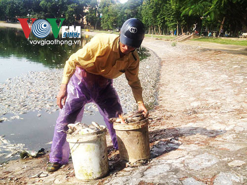 Ước tính mỗi ngày có hàng tấn cá chết trên hồ Thiền Quang (Hà Nội).