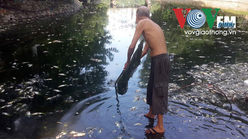 Anh Trần Văn Thành đang vớt chết ở hồ cho biết: Ngày hôm nay, riêng anh đã vớt tới 5 tạ cá chết về để làm thức ăn chăn nuôi. Và, đây chỉ là một phần rất nhỏ, lượng cá chết.
