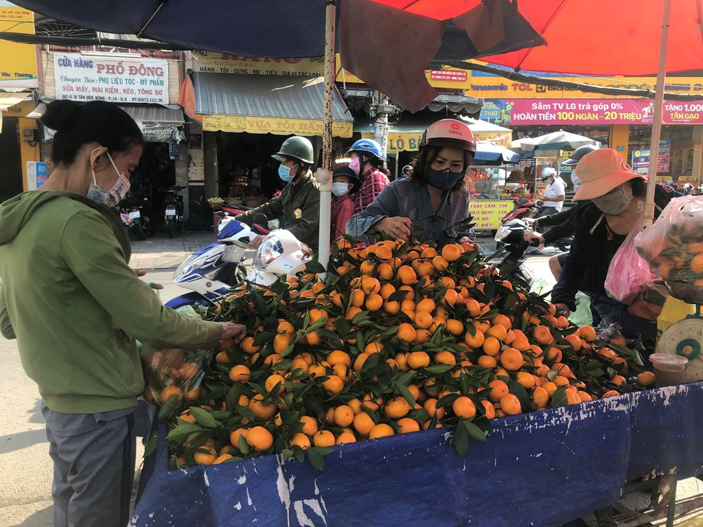 Hoa trái ngập chợ, đều là hàng tươi mới trong ngày. Bà Minh (quầy hàng trái cây chợ Phú Lâm, Q.6) cho biết: "Rằm tháng Giêng còn gọi là Tết Nguyên tiêu là một trong những ngày rằm lớn nhất trong năm. Nắm bắt nhu cầu khách trong ngày này. Ngay từ trước Tết, chúng tôi đã đặt mối lái các sản phẩm trái cây tươi ngon nhất để đem về chợ. Năm nay giá nhiều mặt hàng trái cây không tăng so với trước Tết bởi sức mua không cao lắm do dịch COVID-19 nên mọi người thắt chặt chi tiêu".