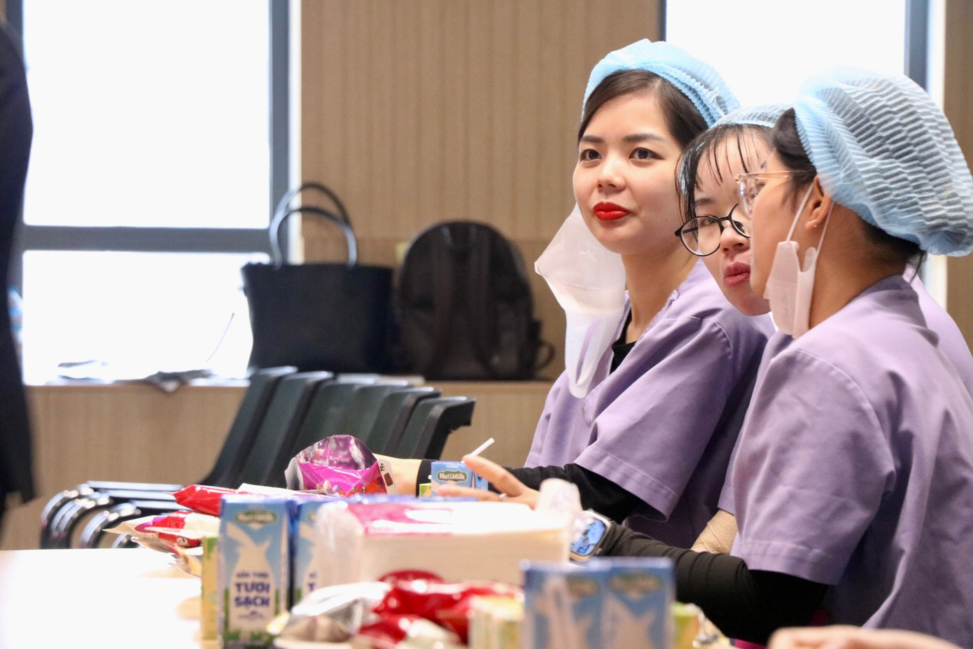 | Từ sáng sớm, nhiều người đã có mặt tại hội trường tầng 4 Bệnh viện Đa khoa Hồng Ngọc - Phúc Trường Minh để tham gia chương trình hiến máu “Blouse trắng - Trái tim hồng”. |