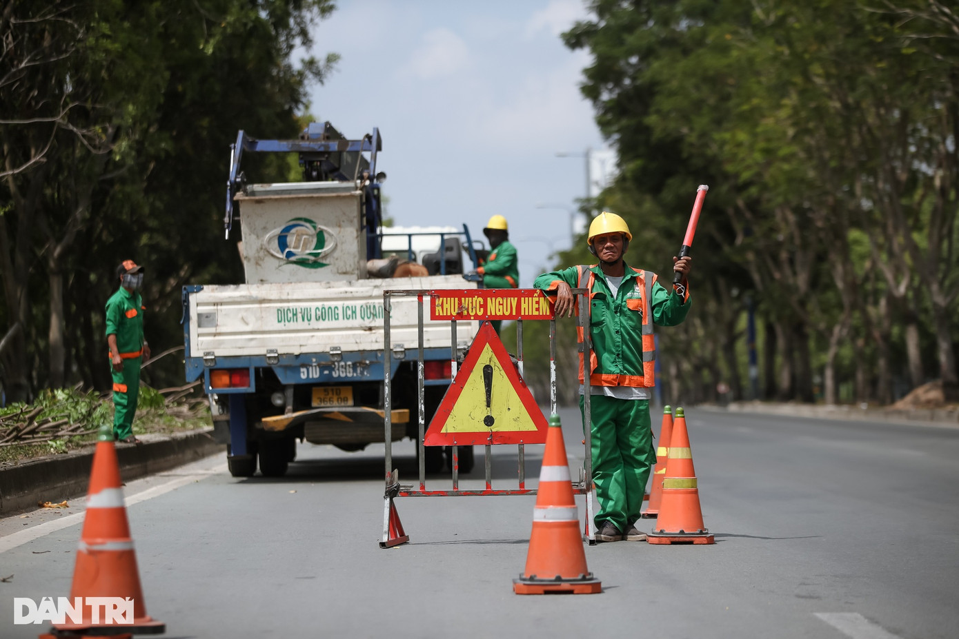 Để đảm bảo an toàn giao thông, khu vực di dời, chặt hạ cây xanh luôn được bố trí người hướng dẫn các phương tiện lưu thông.