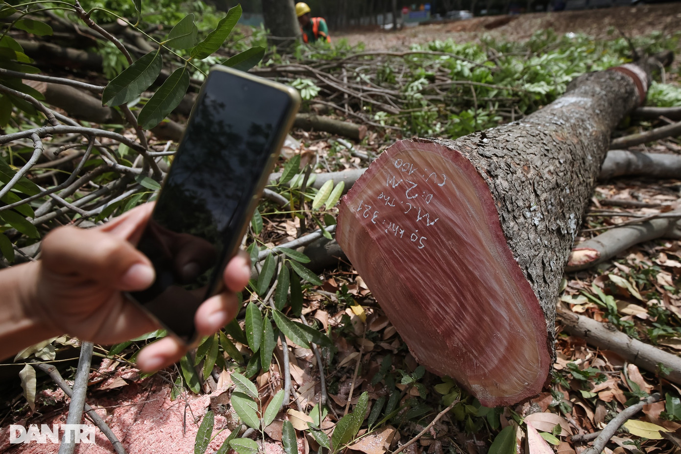Những cây xanh sau khi chặt hạ sẽ được đo đạc, lưu lại số liệu.