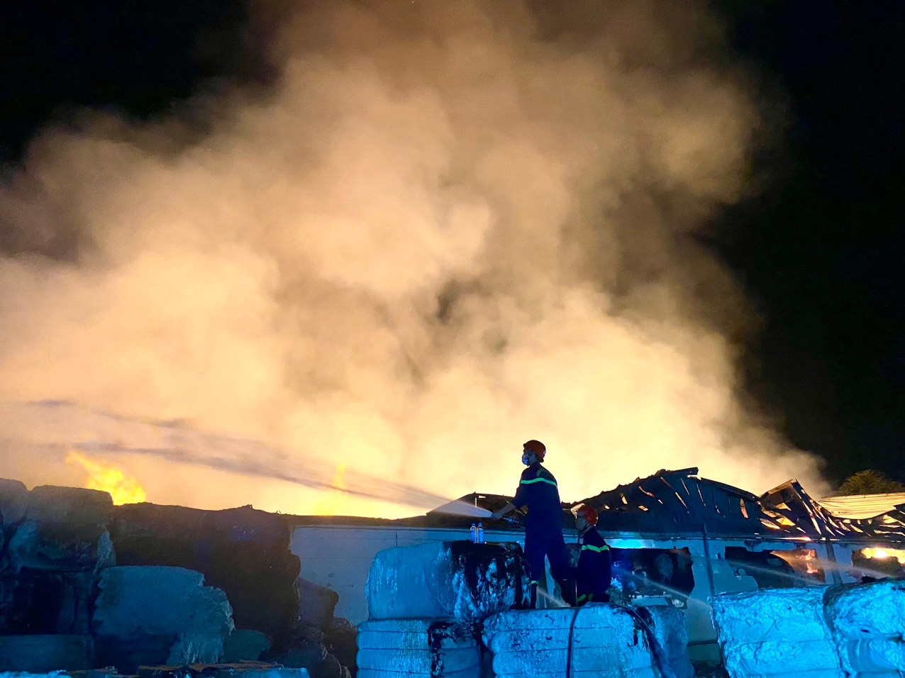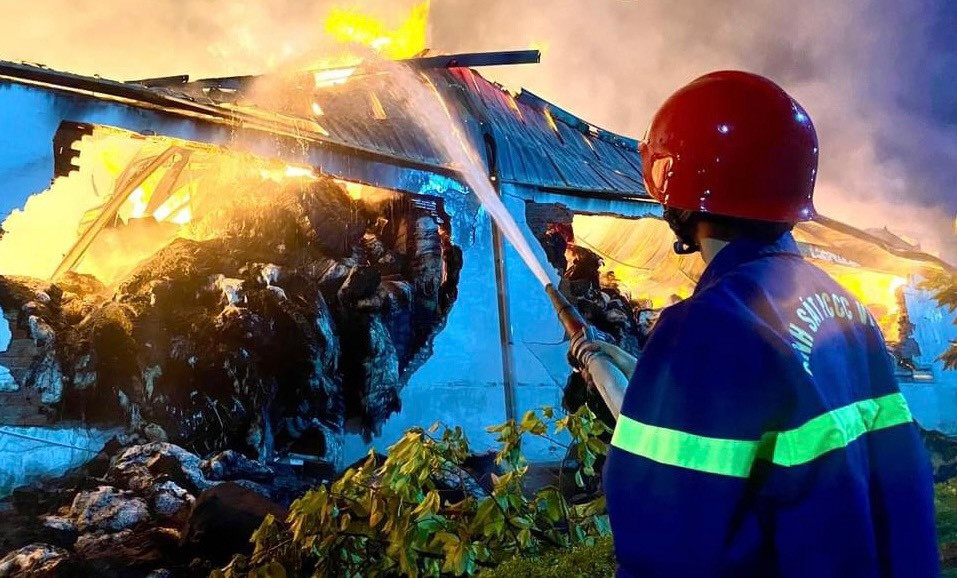 | Khu vực bị cháy là kho chứa vật liệu bông nên đám cháy bùng phát dữ dội. |