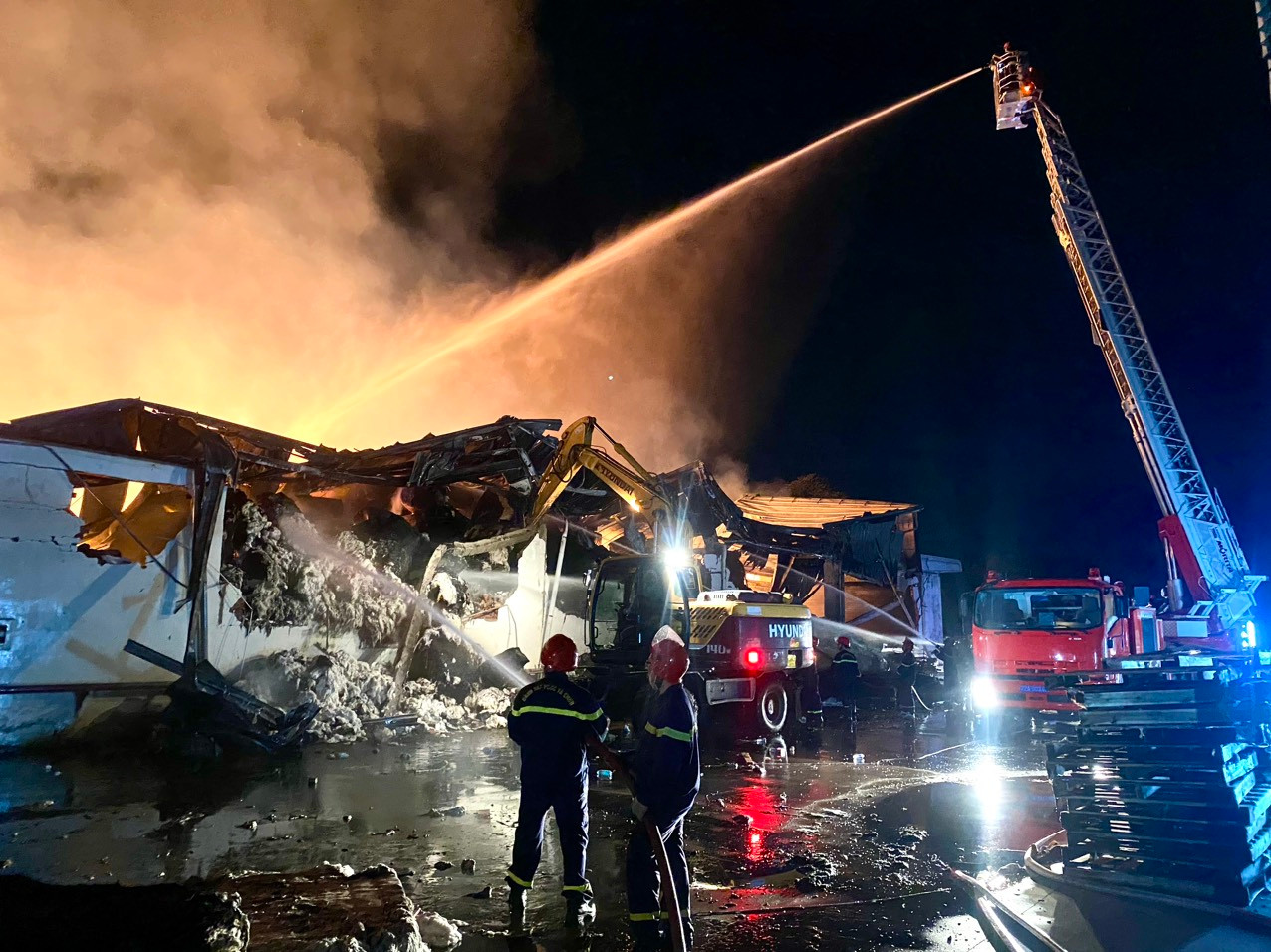 Tại hiện trường, do chất cháy là sợi bông nên ngọn lửa lan nhanh, cháy dữ dội, nhiệt lượng toả ra rất lớn. Vì vậy, lực lượng Cảnh Phòng cháy chữa cháy và Cứu nạn cứu hộ đã triển khai nhiều biện pháp nghiệp vụ, chiến đấu xuyên đêm để ngăn không cho đám cháy lan rộng ra các khu vực xung quanh.