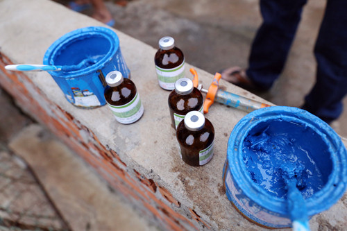 Tại hiện trường, cơ quan công an thu giữ bơm tiêm, 32 xô nước có gắn vòi, 48 chai thuốc an thần nhãn hiệu prozil fort, trong đó 44 chai đã sử dụng.