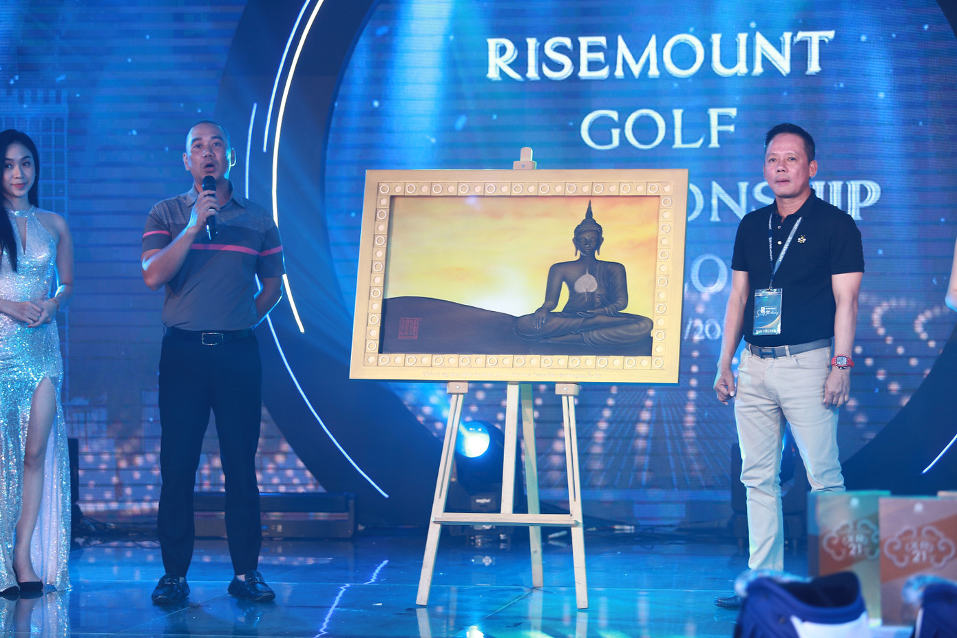 Trong đêm gala dinner đầu tiên vào tối 31/10, các golfer đã cùng đấu giá gây quỹ bức tranh dát vàng “Bình An” (do chính nhà sáng lập thương hiệu Risemount - ông Bùi Đức Long đặt tên) và gây quỹ được 120 triệu đồng.