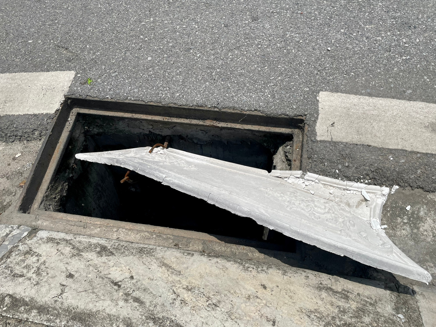 Hiện có rất nhiều hố ga được che bằng tấm bê tông dày dặn. Tuy nhiên, những tấm bê tông này lại không vừa với nắp cống, nhô lên, tạo thành vật cản rất nguy hiểm. Nhiều tấm bị nứt vỡ - là dấu vết của nhiều cú đâm va.
