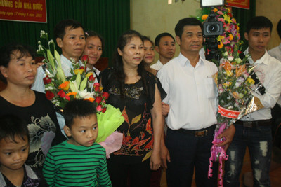 Hai vợ chồng ông Chấn, bà Chiến ôm nhau trong niềm hạnh phúc
