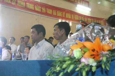 Hơn 9h, ông Chấn cùng vợ, ông Thân Ngọc Hoạt (người đại diện cho ông Chấn) và gia đình có mặt tại Hội trường UBND xã Nghĩa Trung.