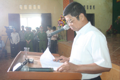 Tại đây, trước sự chứng kiến của hàng trăm người dân trong xã Nghĩa Trung, ông Ngô Hồng Phúc-Phó Chánh tòa Phúc thẩm TAND Tối cao đã đọc bản xin lỗi, cải chính đối với ông Nguyễn Thanh Chấn.