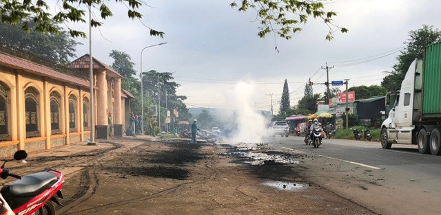 Theo thông tin ban đầu, khoảng 4 giờ sáng 2-8, chiếc xe tải chở hàng chục tấn than lưu thông trên Quốc lộ 14, hướng từ tỉnh Đắk Nông đi TP HCM, khi đến thôn 3, xã Nghĩa Trung, huyện Bù Đăng, tỉnh Bình Phước, số lượng than trong xe tải bất ngờ phát hỏa, bốc khói nghi ngút.