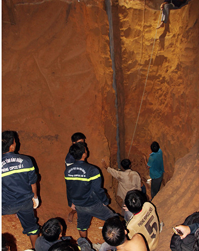 Nhận được tin báo, lực lượng chức năng đã điều nhiều nhân viên và phương tiện tới hiện trường để giải cứu cháu bé.