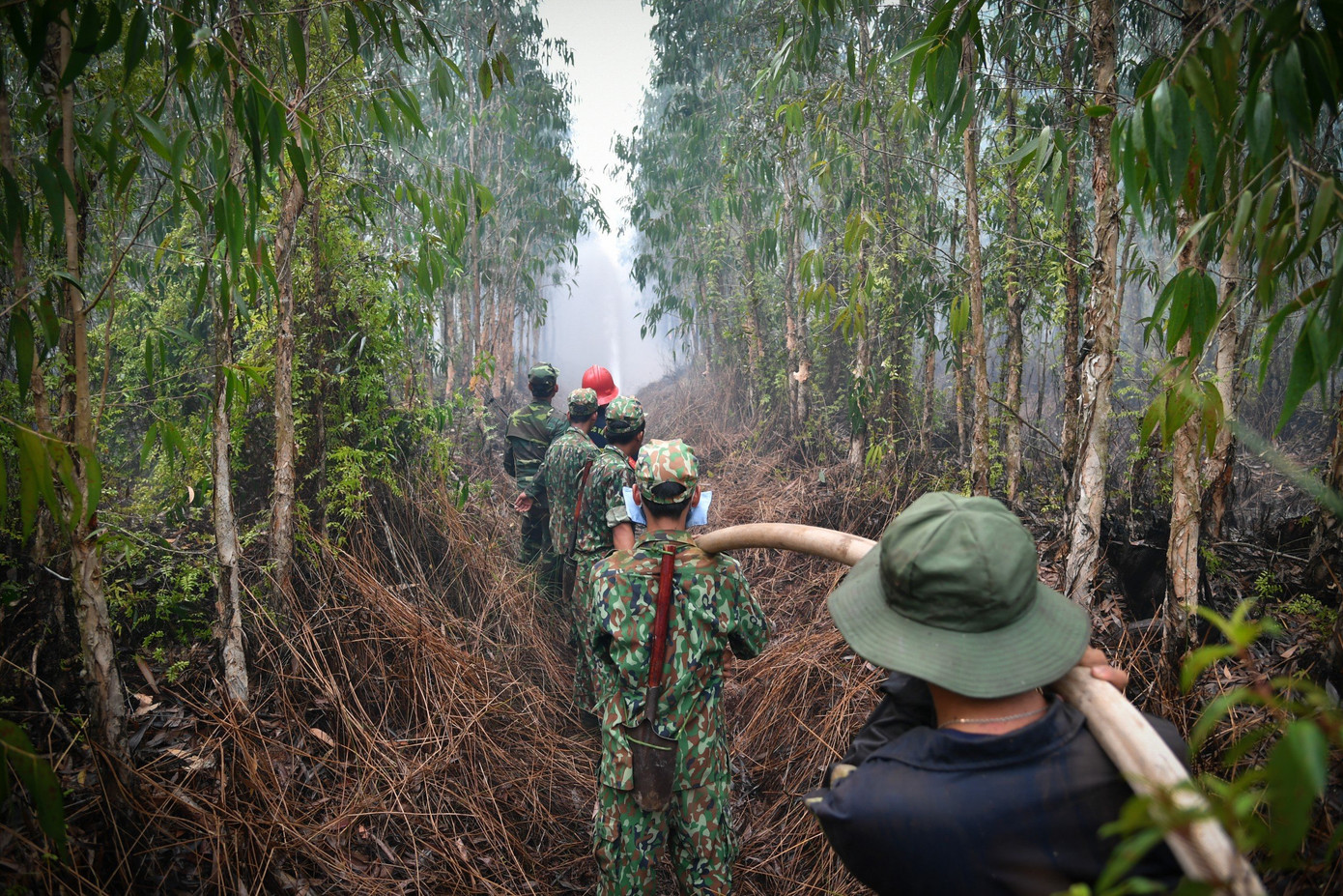 Địa phương đã huy động khoảng 550 người tham gia chữa cháy, gồm: Sư đoàn 330, Quân khu 9, Bộ CHQS tỉnh, Công an tỉnh và lực lượng tại chỗ... Sử dụng 35 máy bơm nước chuyên dùng, 2 vỏ máy, 1 ca nô, 2 flycam tham gia chữa cháy.