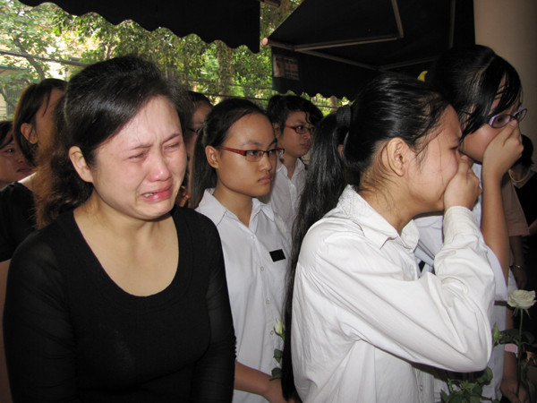 | Người thân, thầy cô, bạn bè khóc thương hai em. |