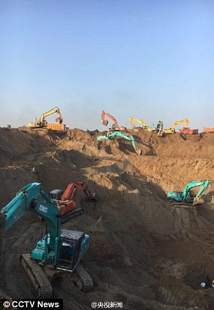 Hàng trăm xe tải, máy xúc được đưa tới hiện trường để đào xới toàn bộ khu vực xung quanh miệng giếng, tìm kiếm cậu bé.