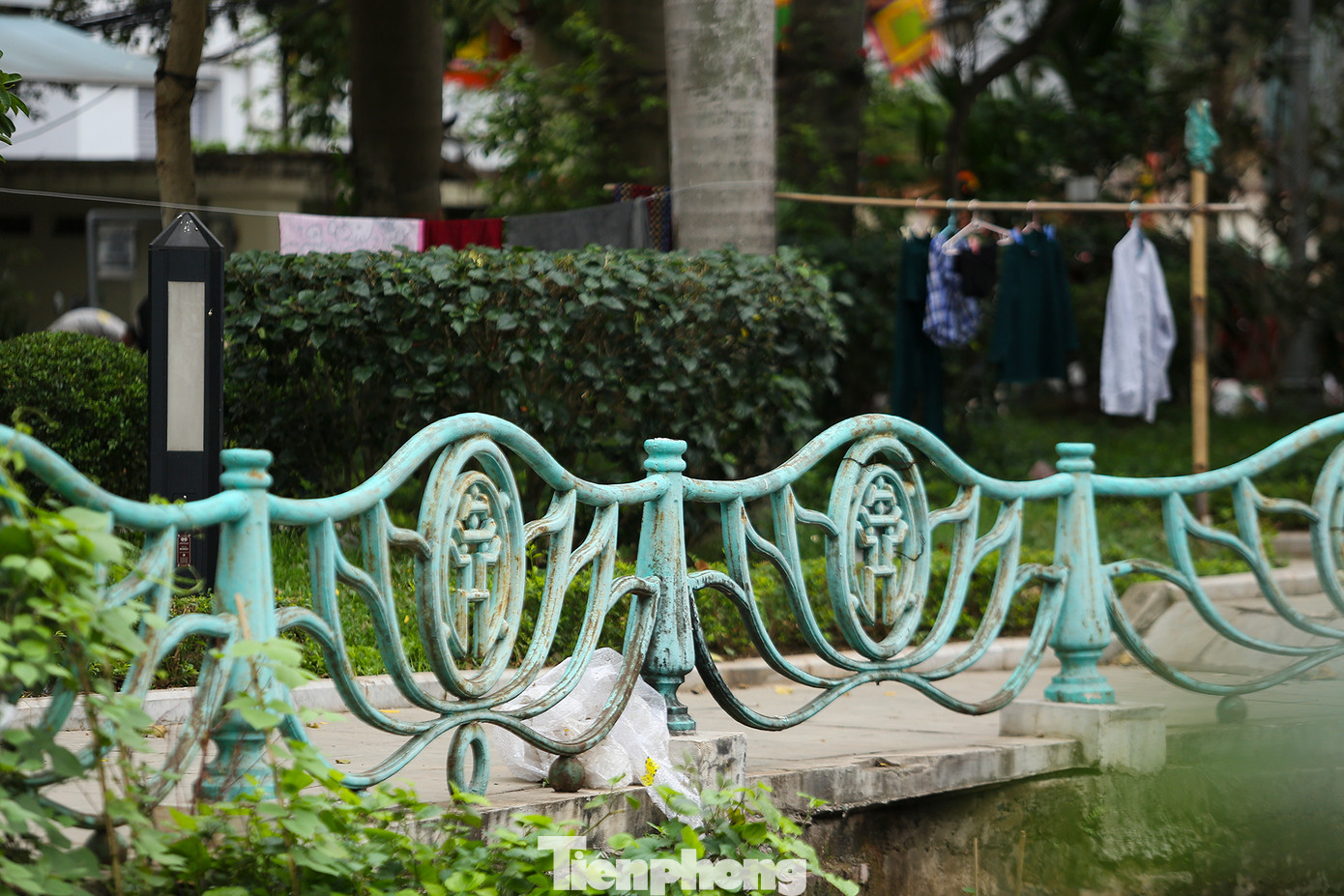 | Những quả cầu gang bị đánh cắp, nước mưa cùng nhiều yếu tố khác rơi vào khiến cho phần lõi của lan can cũng bị hư hỏng nặng. |