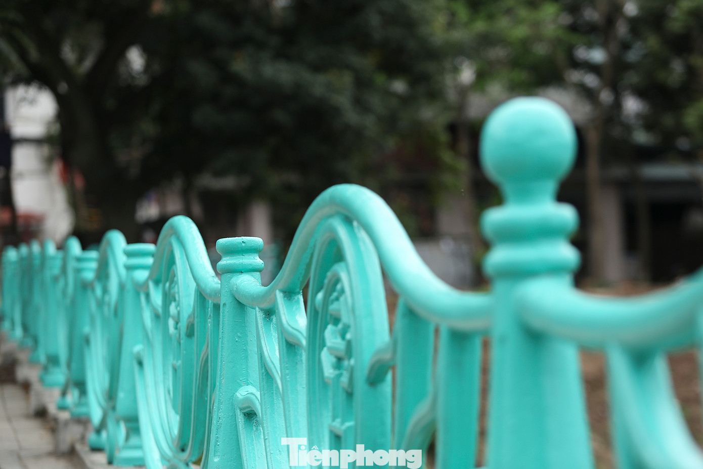 | Một đoạn lan can trên tuyến phố Từ Hoa đã "nhẵn trụi" không còn một quả cầu gang nào. |