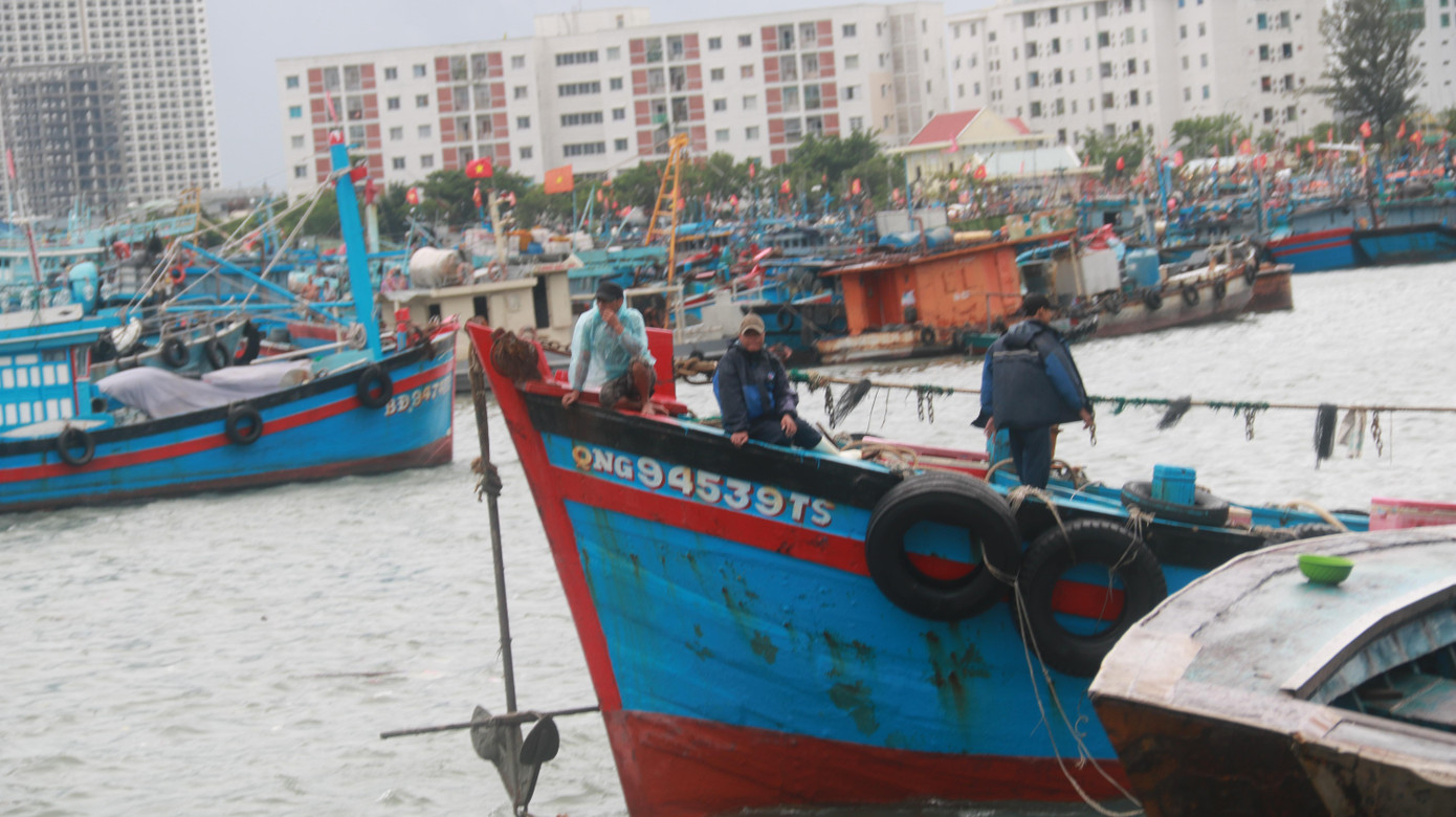 Các tàu cá miền trung nối đuôi nhau vào âu thuyền Thọ Quang tránh bão.