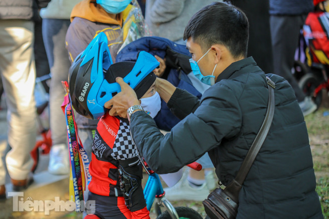 Tham gia giải đua, các bé được trang bị mũ bảo hiểm cứng, giáp chân, tay đầy đủ để đảm bảo độ an toàn cho các bé.