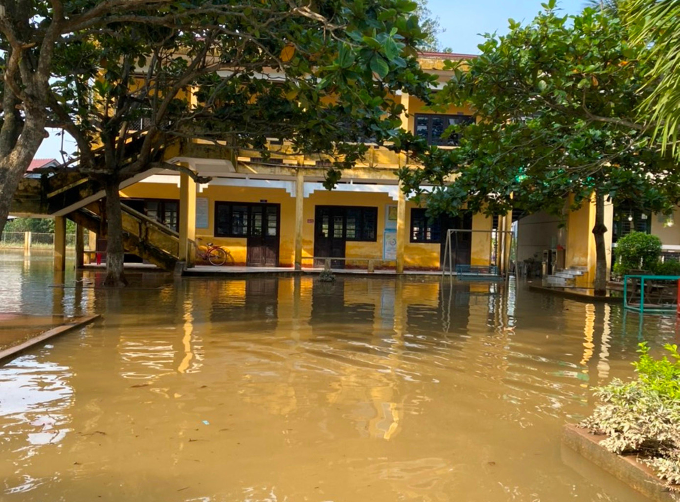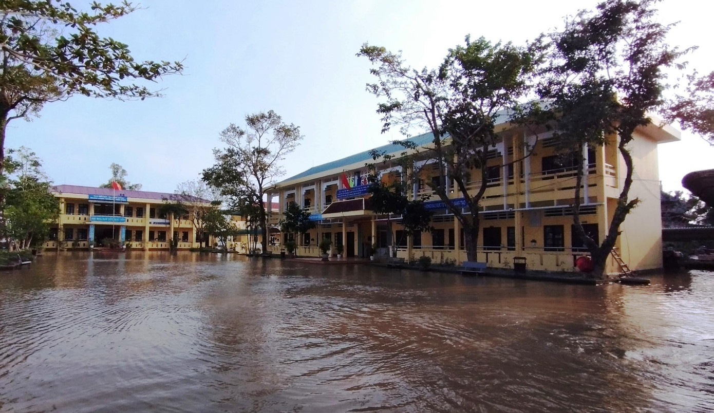 | Trường THCS Phú Lương (xã Phú Lương, huyện Phú Vang, tỉnh TT-Huế) vẫn bị ngập nặng vào sáng 17/10. |