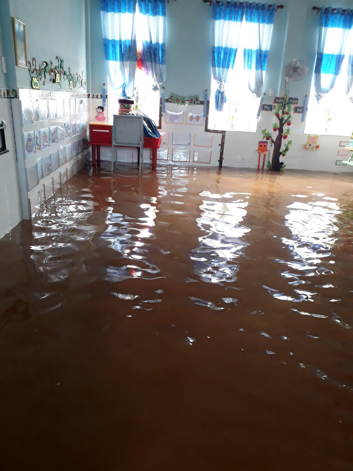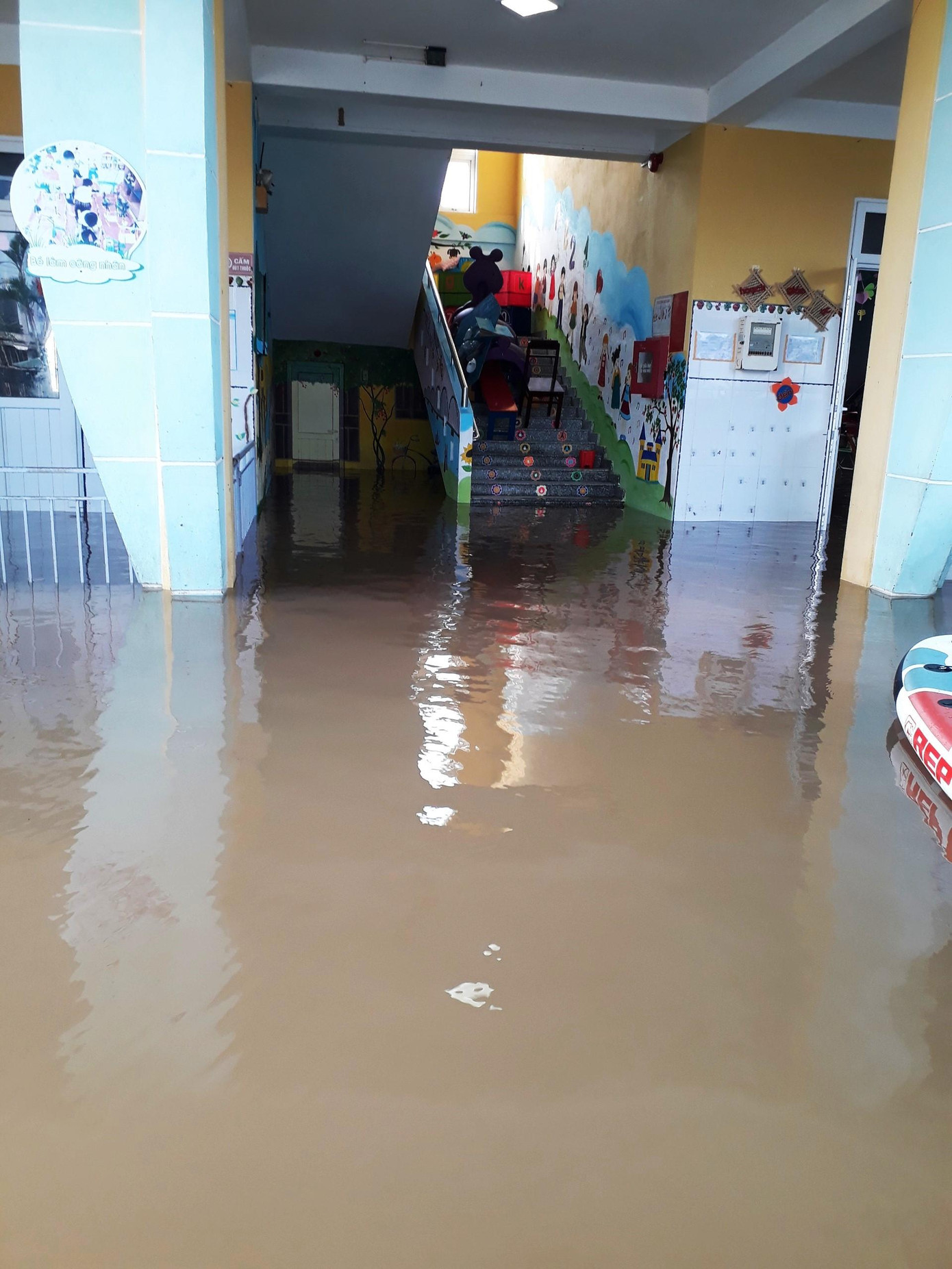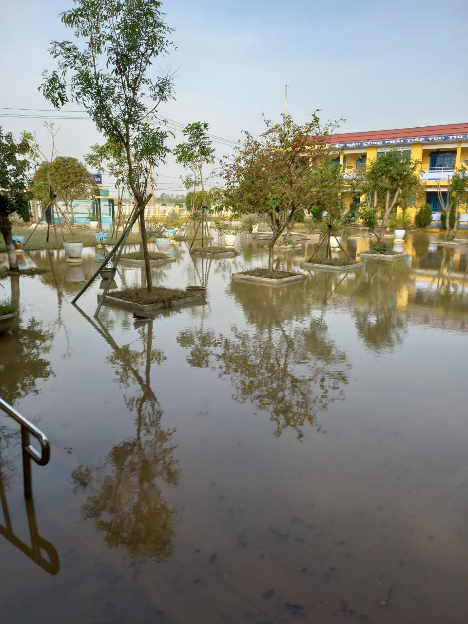 Trước đó, toàn huyện có 23/49 ngôi trường bị ngập lụt ở mức từ 10-40cm. Trong sáng 17/10, trên địa bàn vẫn còn 11 trường tiểu học (3.702 học sinh), 6 trường THCS (2.791 học sinh) chưa thể mở cửa hoạt động trở lại. Nhiều trường đã chủ động chuyển từ dạy học trực tiếp sang trực tuyến.