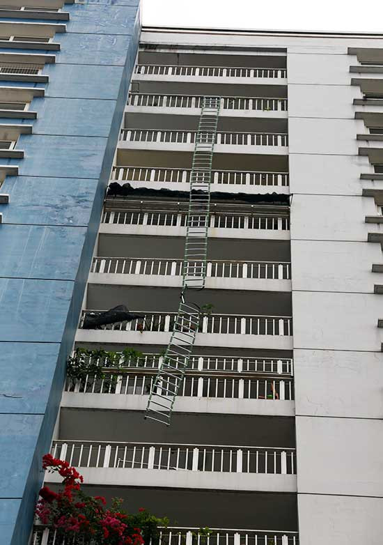 Đoạn thang thoát hiểm mà người phụ nữ ngoài 50 tuổi leo từ tầng 19 được cho trượt chân rơi xuống đất tử vong.