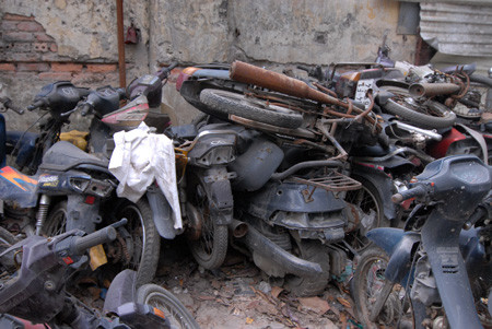 Những chiếc xe máy phơi nắng, mưa bị hư hỏng nặng.