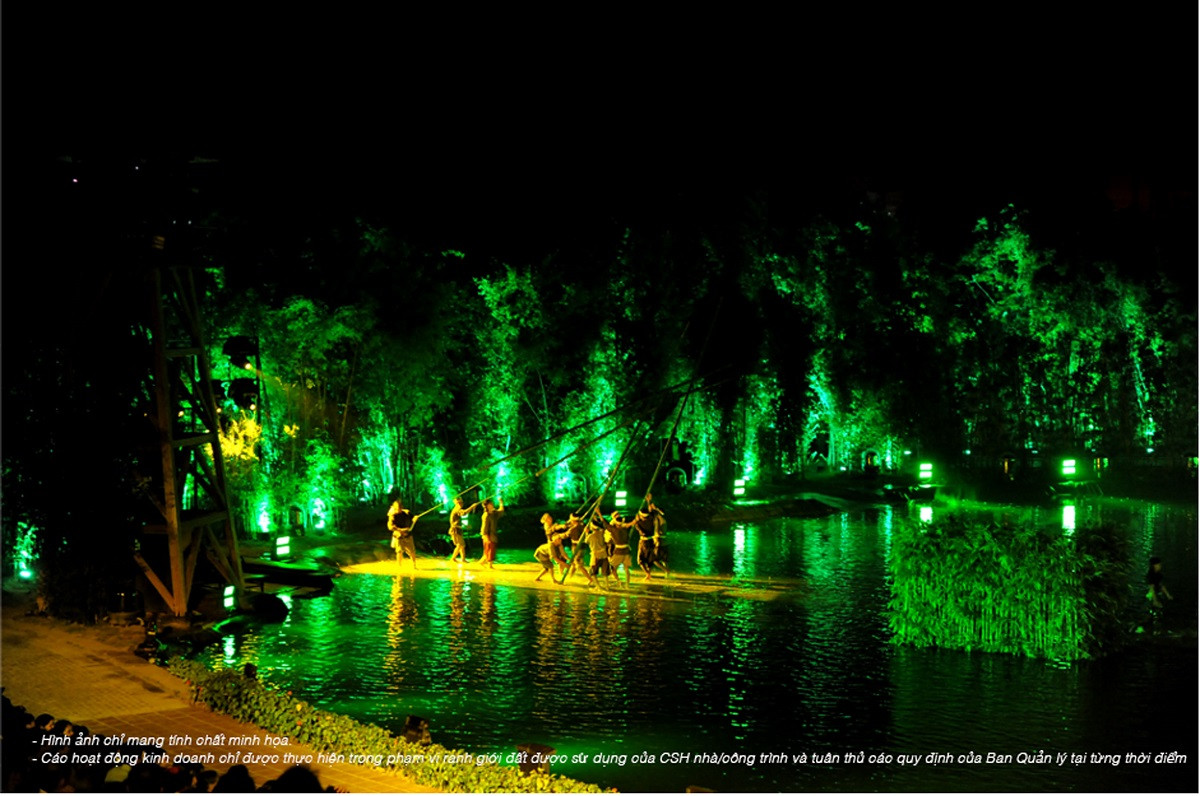 Ở ngay trung tâm của Tinh hoa Việt Nam, ban ngày là một hồ nước lớn thơ mộng, đêm xuống hồ nước biến mất và tạo thành một mặt phẳng chỉ bằng một nút bấm – nơi các nghệ sĩ có thể biểu diễn và khán giả có thể thỏa sức hòa mình vào không gian văn hóa Việt Nam truyền thống.
