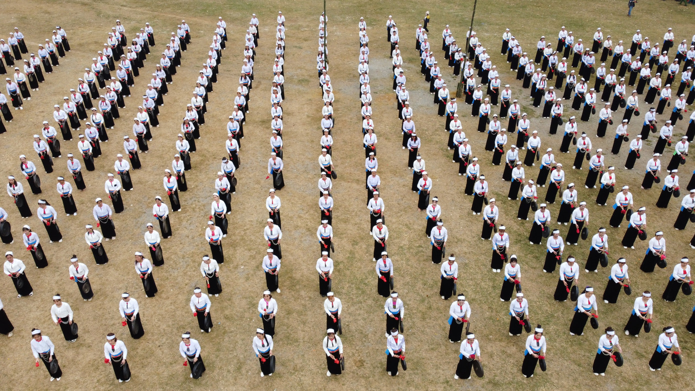 Tại buổi lễ, có hơn 500 nghệ nhân chiêng trình diễn màn hoà tấu chiêng Mường.