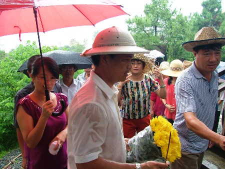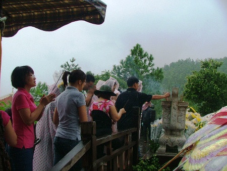 Rất đông người đến viếng dưới cơn mưa tạo nên những cảnh rất xúc động