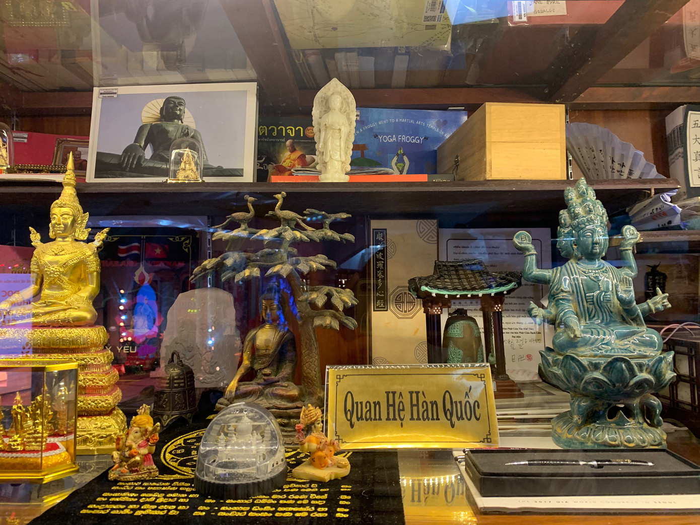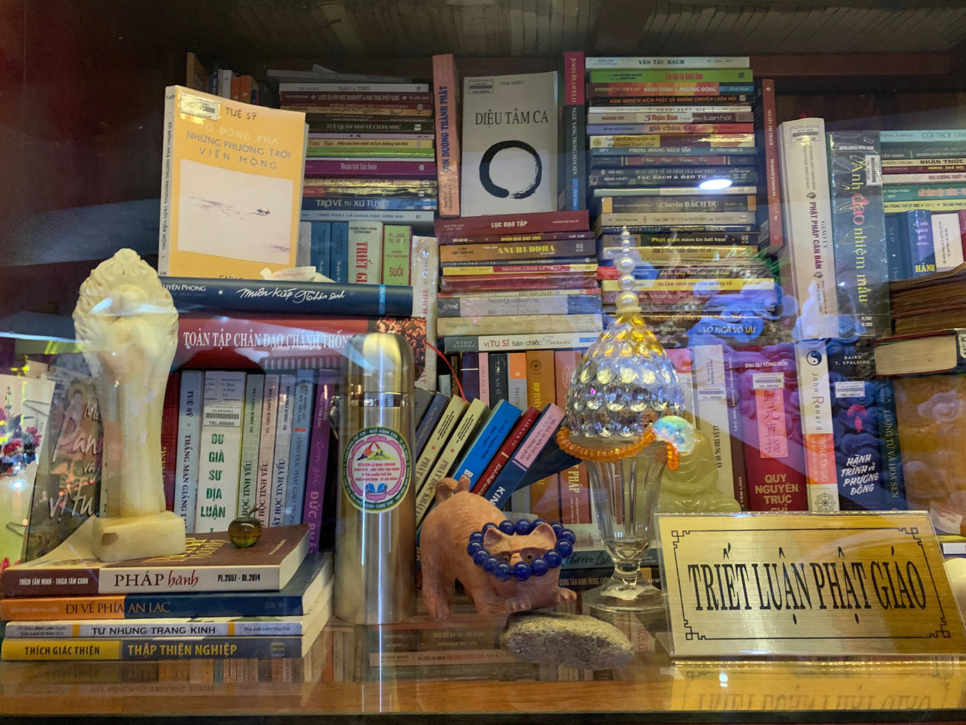 | Ngoài các loại sách, thư viện Vạn Hạnh còn trưng bày nhiều hiện vật liên quan đến văn hóa Phật giáo không chỉ của Việt Nam mà còn từ nhiều quốc gia khác như Nhật Bản, Hàn Quốc, Trung Quốc… Ảnh: Khánh - Hà. |