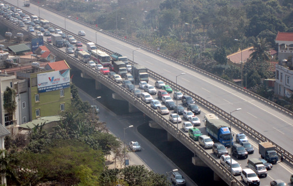 Ngoài dòng xe vào nội thành Hà Nội, các phương tiện đi từ các tỉnh phía Đông lên phía Tây cũng đi qua tuyến đường này.