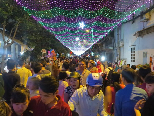 Tại TPHCM, hàng ngàn người dân ở các quận, huyện của TPHCM đã đổ về trung tâm thành phố, các khu vực có nhà thờ để vui chơi và cầu nguyện.