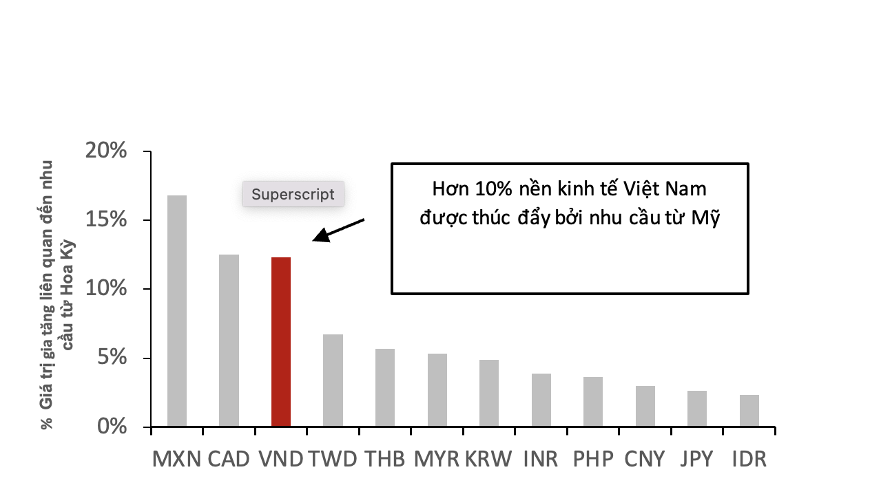 Ông Michael Kokalari - Giám đốc phòng Phân tích kinh tế vĩ mô và Nghiên cứu thị trường VinaCapital - cho biết, Việt Nam là một trong ba quốc gia trên thế giới có mối liên kết chặt chẽ nhất với Mỹ về mặt kinh tế, mức tiêu dùng mạnh mẽ của Mỹ đang thúc đẩy sự phục hồi của xuất khẩu, sản xuất và tăng trưởng GDP của Việt Nam.
