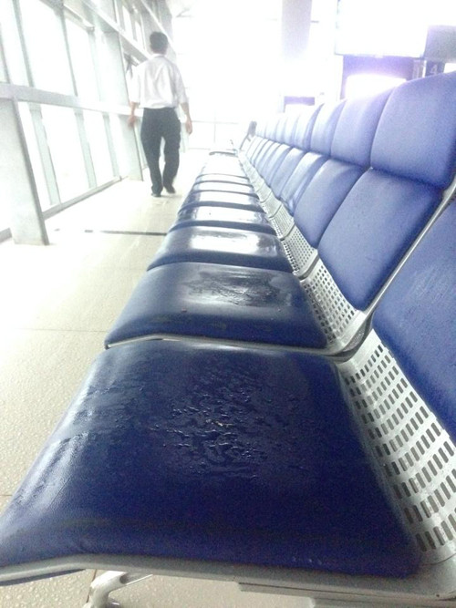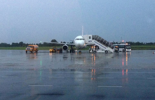 Khu nhà làm thủ tục và ngồi chờ ở sân bay Buôn Ma Thuột, Đăk Lăk mỗi lần có cơn mưa lớn lại trở nên hỗn loạn.