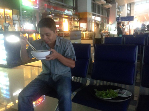 Khách hàng phải ngồi ăn ở băng ghế chờ