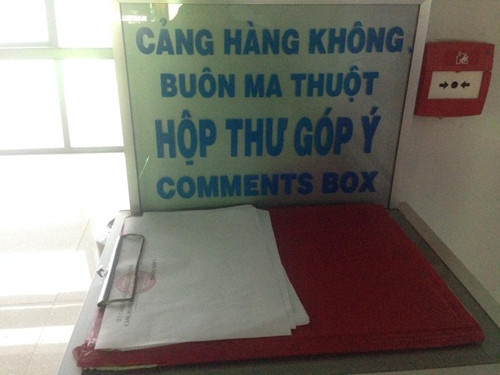 Hòm thư góp ý có giấy nhưng không có bút