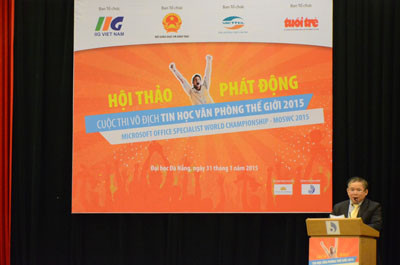 Thứ trưởng Bộ GD và ĐT Bùi Văn Ga chia sẻ đầy tâm huyết với sinh viên trường Đại học Đà Nẵng trong Hội thảo phát động cuộc thi MOSWC 2015 ở khu vực này